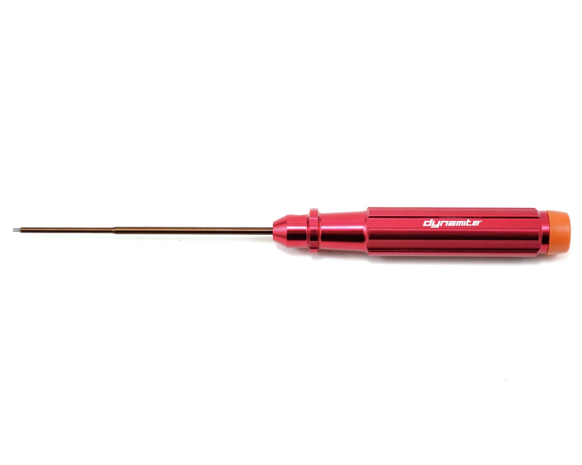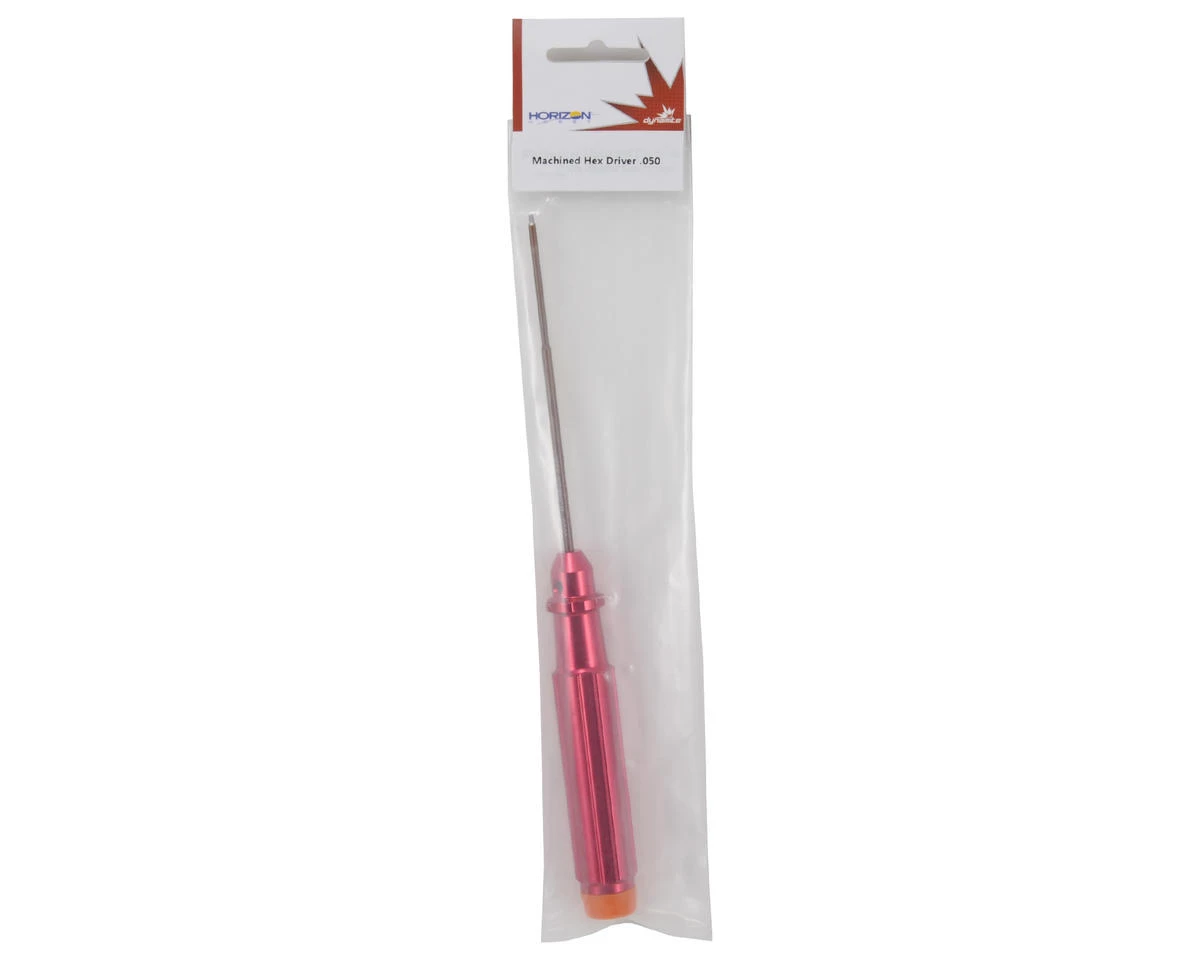This is a Dynamite .050 Machined Standard Hex Driver. Dynamite tools feature stylish red anodized aluminum handles, with replaceable steel tips. To make wrenching easier on your hands, the handles include rotating plastic end caps to swivel in your palm. Plus, the end caps have the tool size printed on the end, and are color coded for easy identification. Package includes .050″ hex wrench.