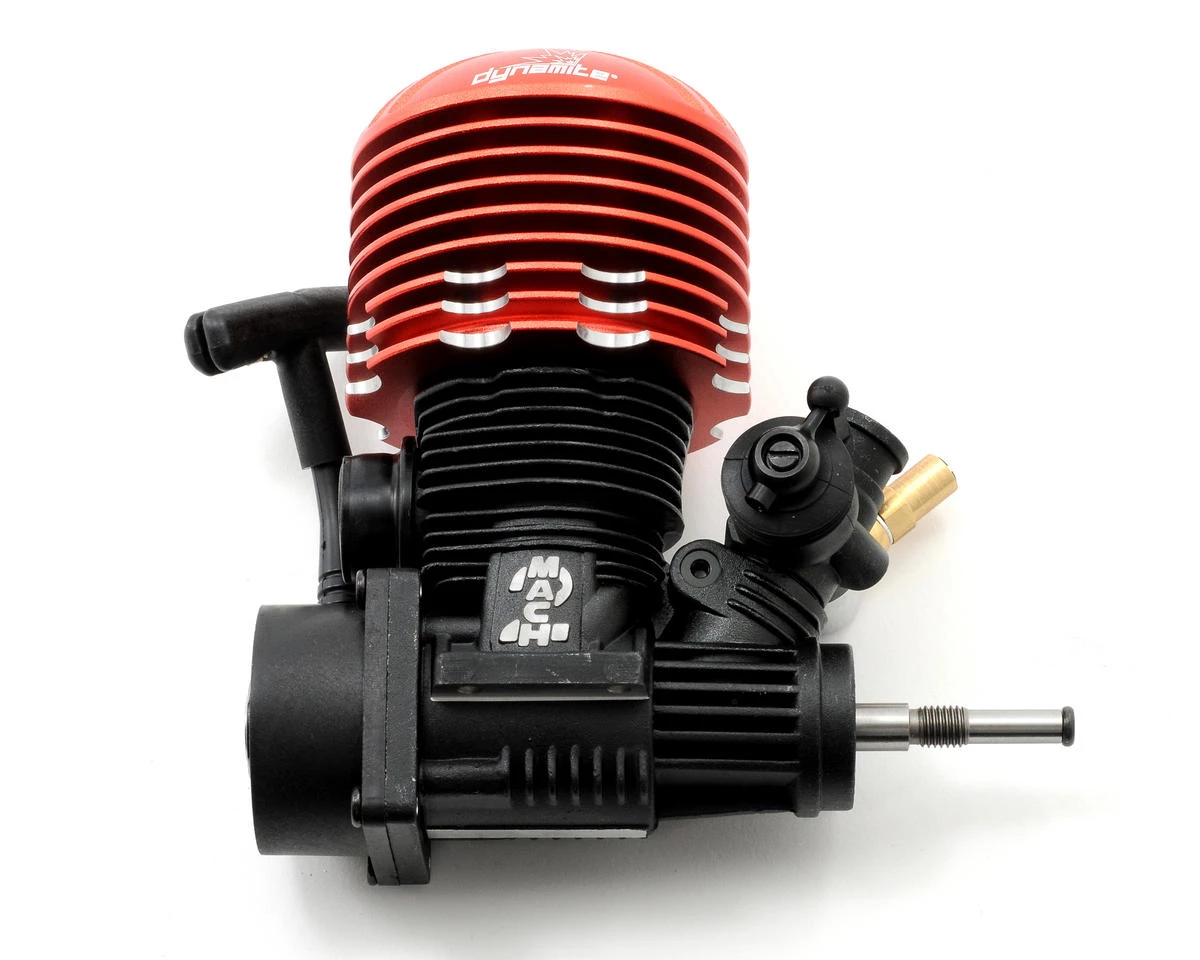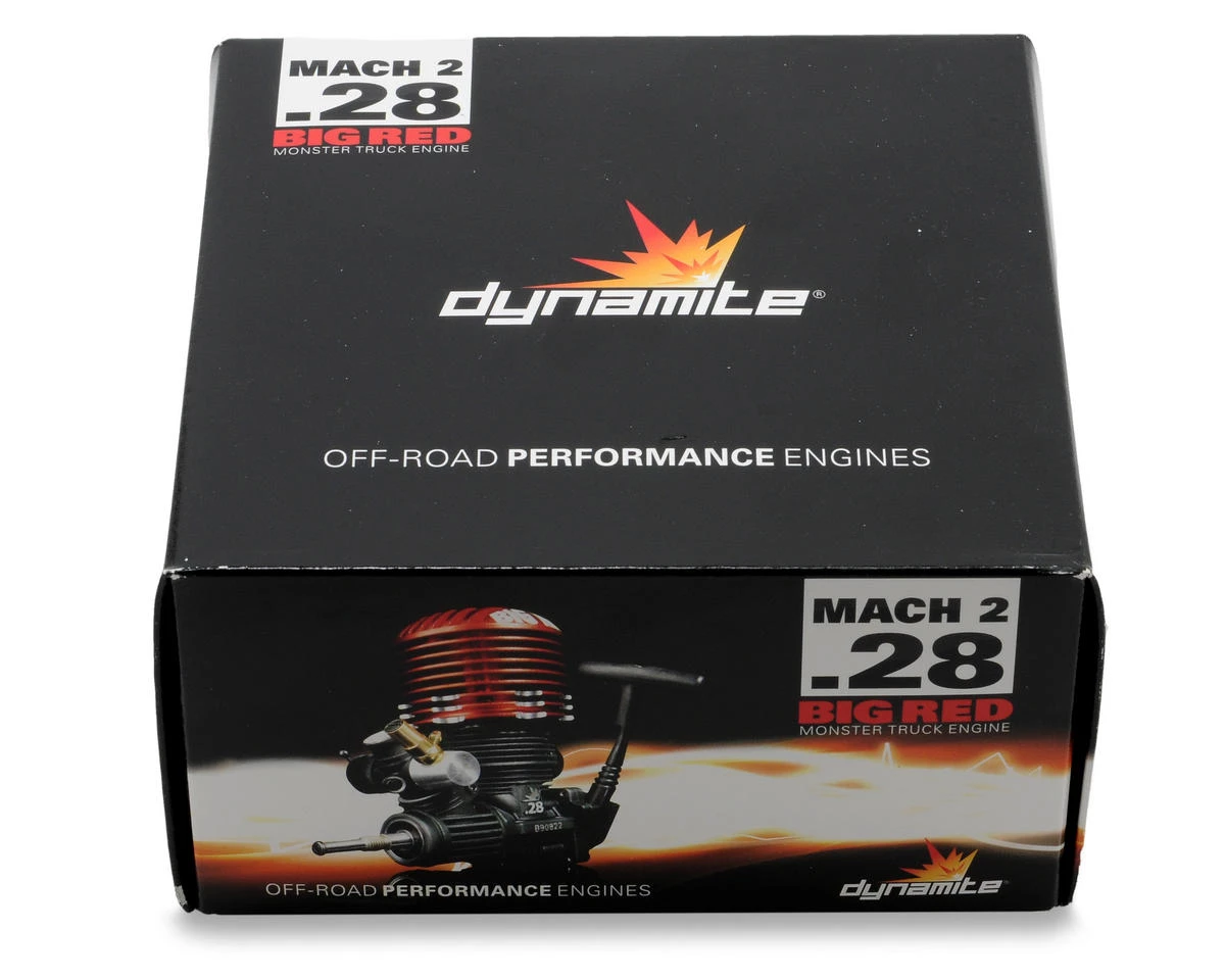 This is the Dynamite Mach 2 “Big Red” .28 nitro engine, with a Pull/Spin Start Combo and is intended for use in Monster Truck applications. Dynamite’s Mach 2 “Big Red” .28 monster truck engine was engineered for superior torque and durability allowing you to unleash the full potential of your nitro monster truck. With features borrowed from the popular Dynamite Platinum series, “Big Red” is a force to be reckoned with. Not only does the engine boast a 13mm turbo ported crankshaft as well as an ABC 6 port piston and sleeve, it also stands out with its oversized aluminum cooling head with “Big Red” etched on the top of the head. Looking for an affordable, high performance engine for your nitro monster truck, look no further as Dynamite’s “Big Red” leaves the competition in the dust.