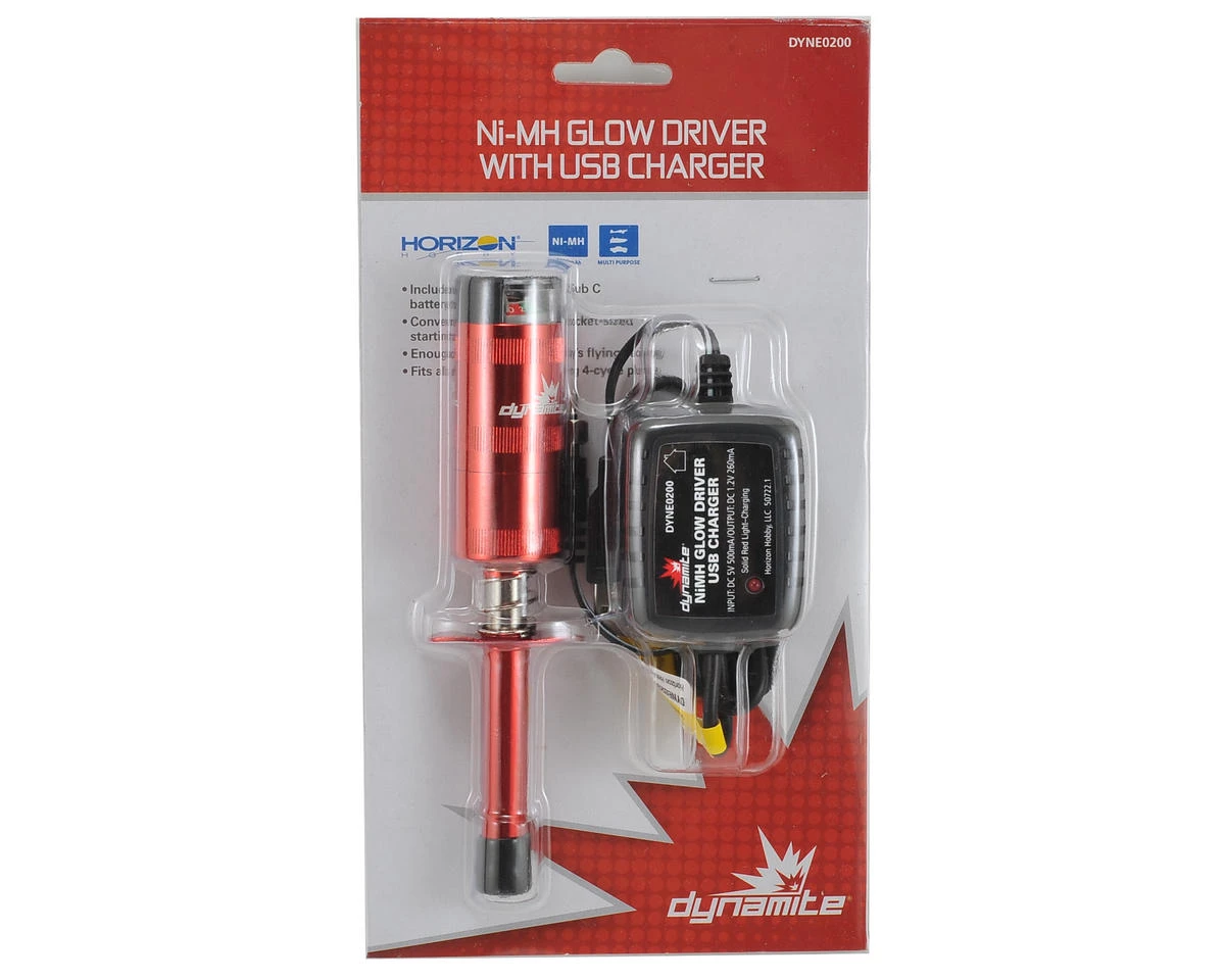 The Dynamite NiMH metered glow driver was designed to make glow ignition easy and affordable. Includes a USB style charge for added flexibility and versatility. The unit comes anodized for durability and great looks. includes a meter which makes it easy to see if glow plug is good or if the unit needs re-charging.