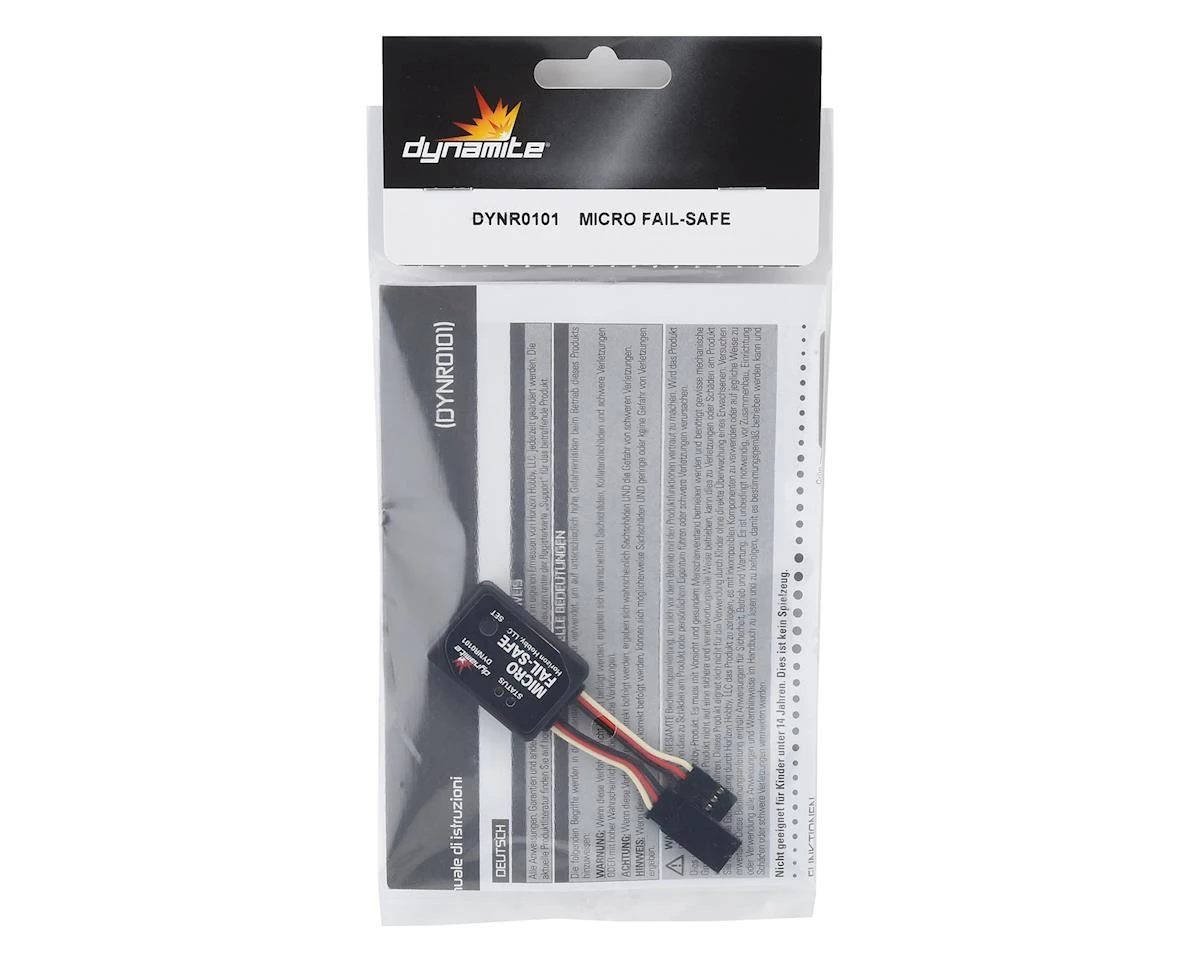 This is a Dynamite Micro Fail-Safe. Once your R/C controller loses control of your R/C vehicle, this part will act as a “fail-safe” that will safely turn off and put you R/C vehicle in idle preventing it from going out of control. It is universally designed to work with all popular brands of R/C systems. It is also equipped with male and female plugs to provide easy installation. This device is recommended for all types of R/C car and truck models.Â