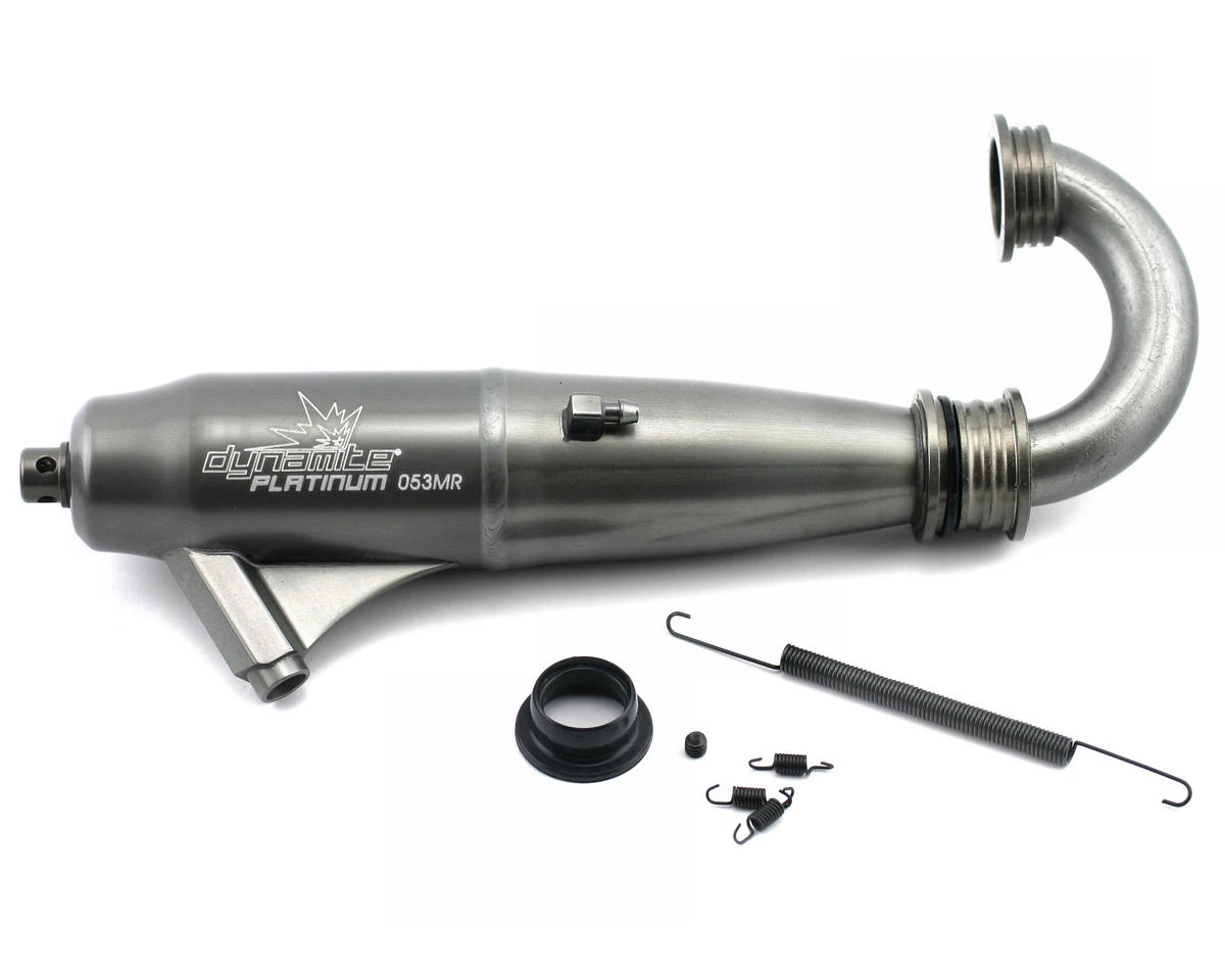 This is the 053 high performance inline exhaust system from Dynamite. The 053 Midrange pipe provides a smooth mid-range power band and is best suited for medium sized flowing off-road tracks. Your nitro vehicle might have come ready to run, but now you’re ready to do much more than that. You’re ready to dominate, to drive circles around the other cars and trucks at the track. You’re ready for premium parts and premium power. You’re ready for Dynamite Platinum Series.