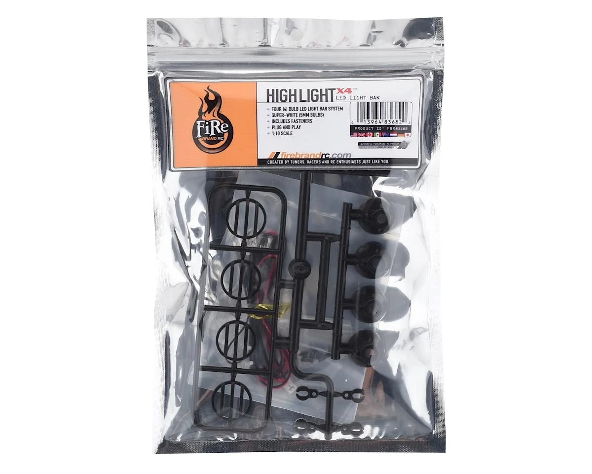 The Firebrand Highlight-X4 Multi-Fit Light Kit will work great on cars, trucks, crawlers, planes, quads and much more. Package includes Lights, Wires, Lenses, Grills, Covers & Fasteners.