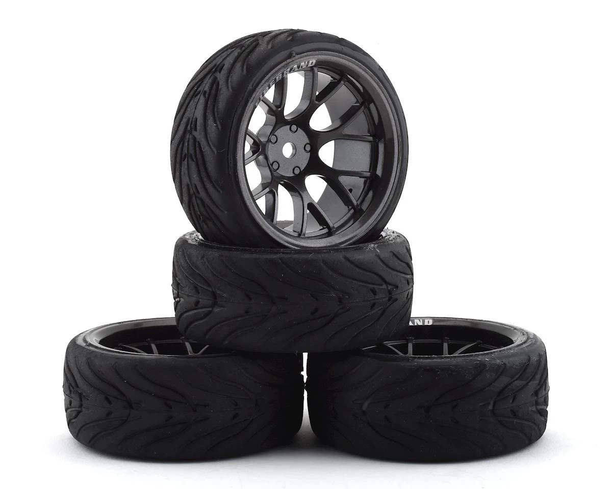 Firebrand Hypernova RT9 Pre-Mounted On-Road Tires feature HyperNova-RT9 on-road race wheels mounted to FireFangâ„¢ treaded racing tires. Both are made from the highest quality ABS plastic and rubber materials available. The FireFang tires are a low-profile and directional, medium-compound, treaded race tire option. These all-new race wheels and tires fit most 1:10 scale, on-road, radio-controlled cars. 2.0″ x 1.0″ HyperNova 9mm, “deep-dish” race wheels are available in Uzi-Metalâ„¢ and, if desired, can be painted with poly carbonate paint.